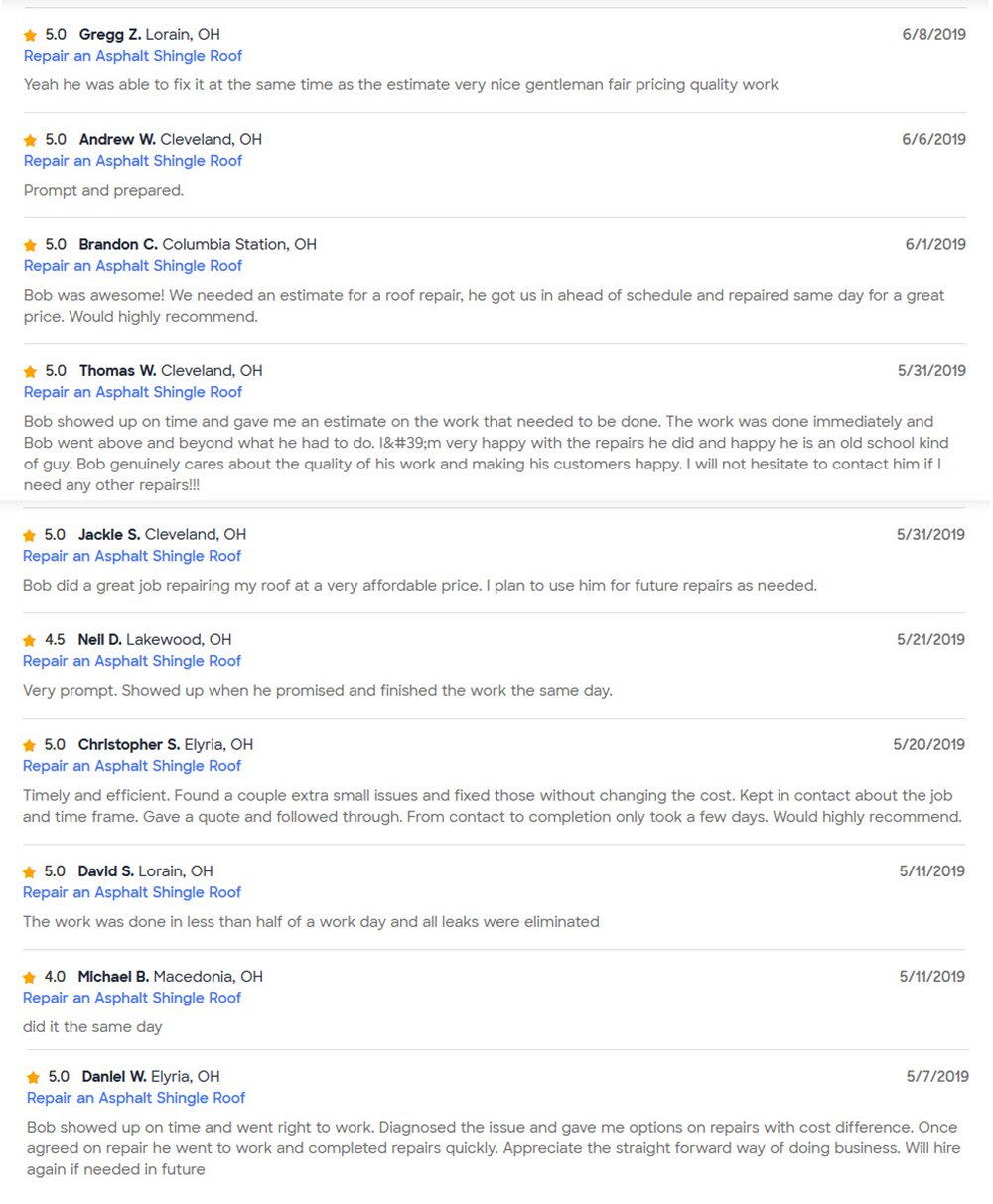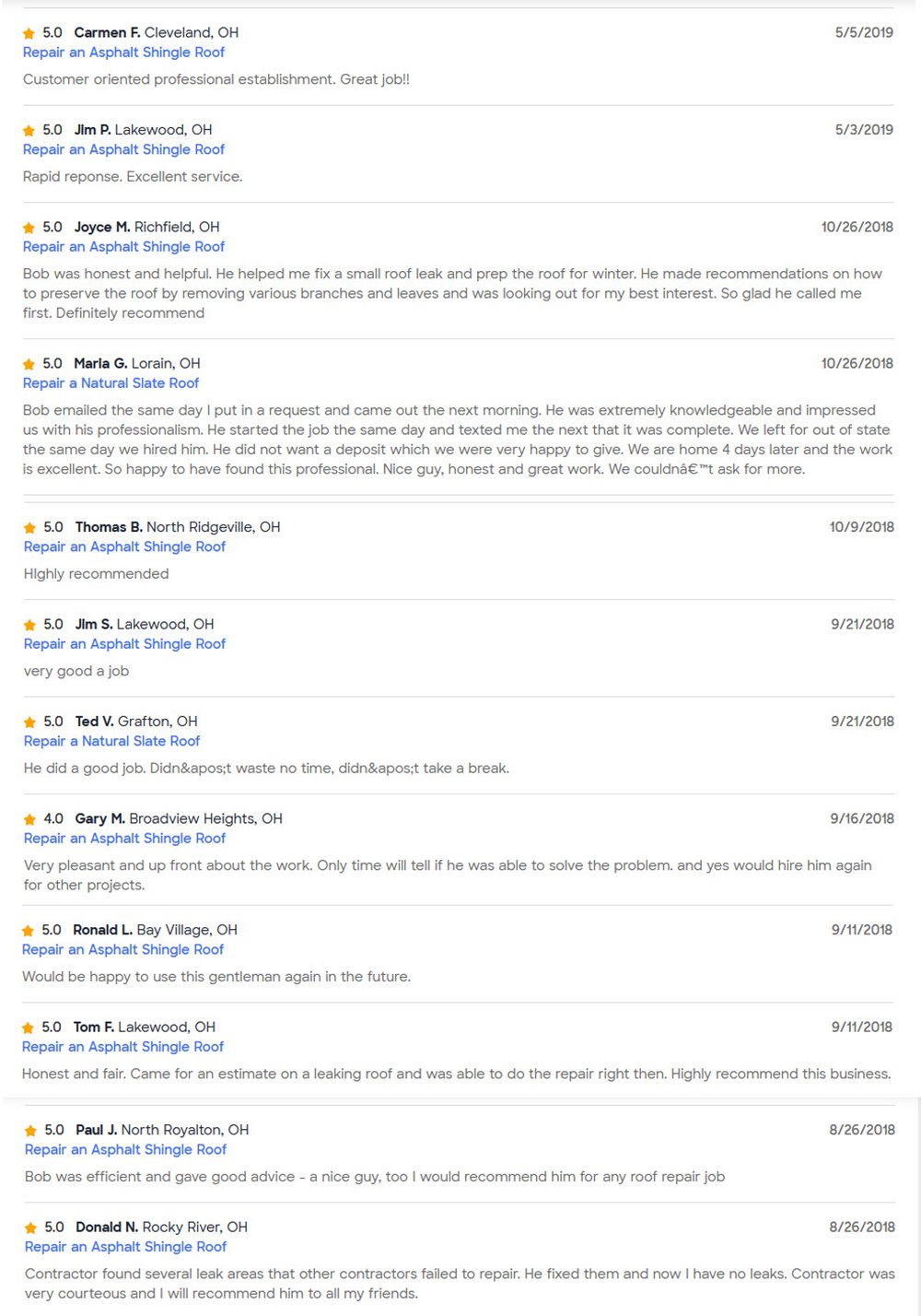 Call us for any roof related problem.. 440-954-2622 .. if no answer.. we are probably busy working, so PLEASE leave a message and we will return your call. We can usually provide same day service.